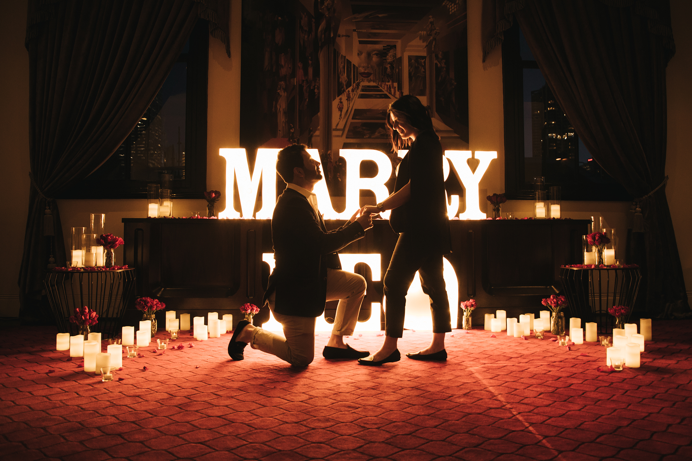 “ I was BLOWN AWAY when I saw the “Marry Me” sign lit up in a beautiful golden colour. I. WAS. SPEECHLESS. The night was followed by our own private photoshoot around the harbour and upstairs inside the restaurant.”